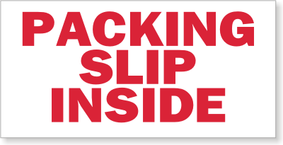 - Bright red labels alert the Receiving Department that the Packing Slip is inside.