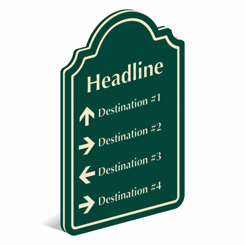 This 24 inch x 18 inch PermaCarve Sign with palladio design can be customized with a headline like Floor Plan, Building Map, etc. and various destinations can be added. Each destination can be customized with a unique directional arrow, chosen from our library.