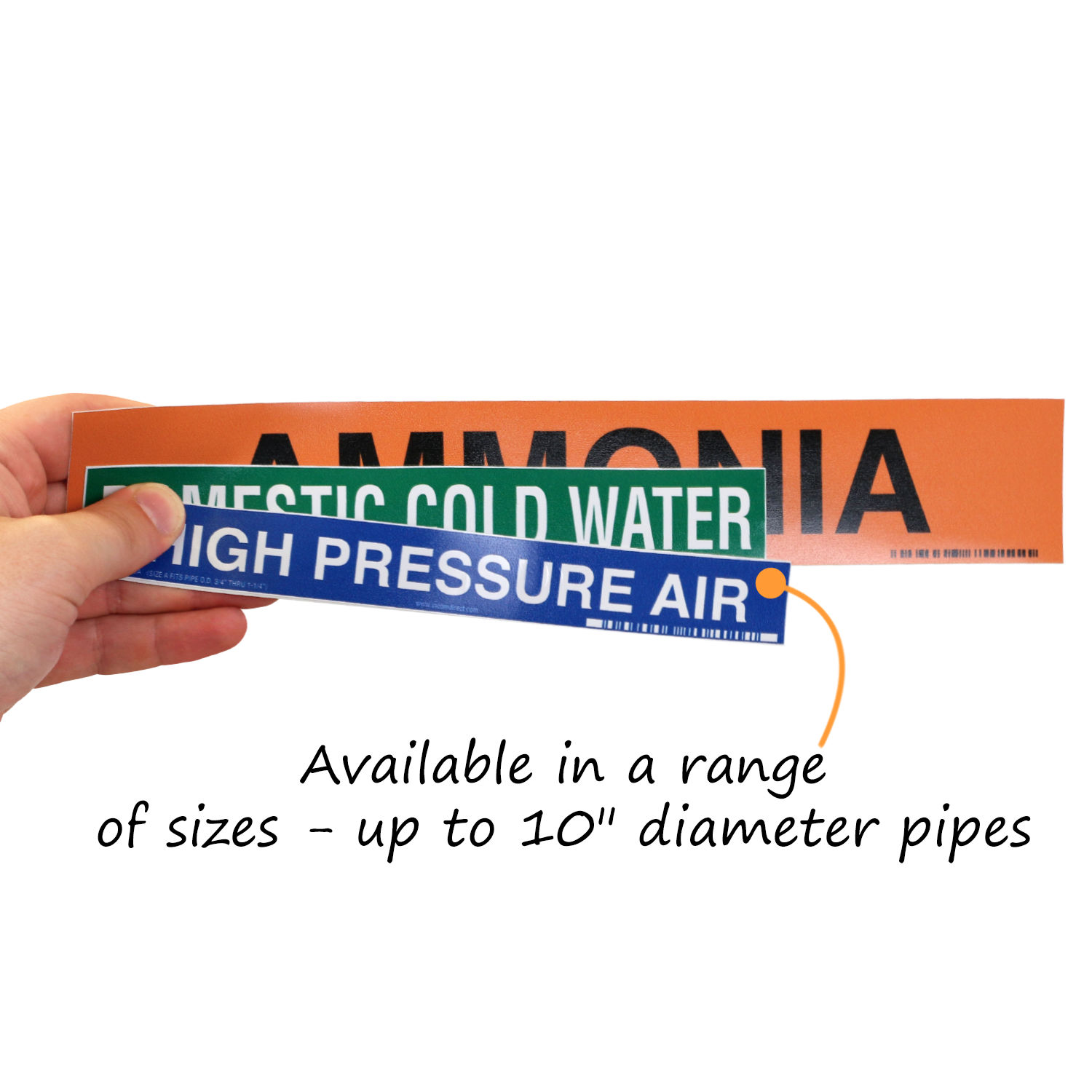 Adhesive pipe markers are durable, self-sticking labels that wrap around a pipe to identify its contents (e.g., Natural Gas, hot water, Compressed Air) and, often, the direction of flow. They are essential for clear identification in industrial settings.