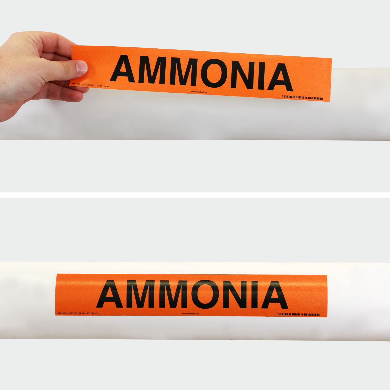 Clean and dry the pipe surface thoroughly before application. Peel the backing and press the adhesive pipe marker firmly onto the pipe, ensuring the text and directional arrows are clearly visible. To meet ANSI standards, install markers at regular intervals, near valves, and wherever the pipe changes direction.