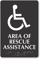 Emergency Shelter TactileTouchâ„¢ Braille Sign: Area Of Rescue Assistance (With Accessible Symbol) SE-6300