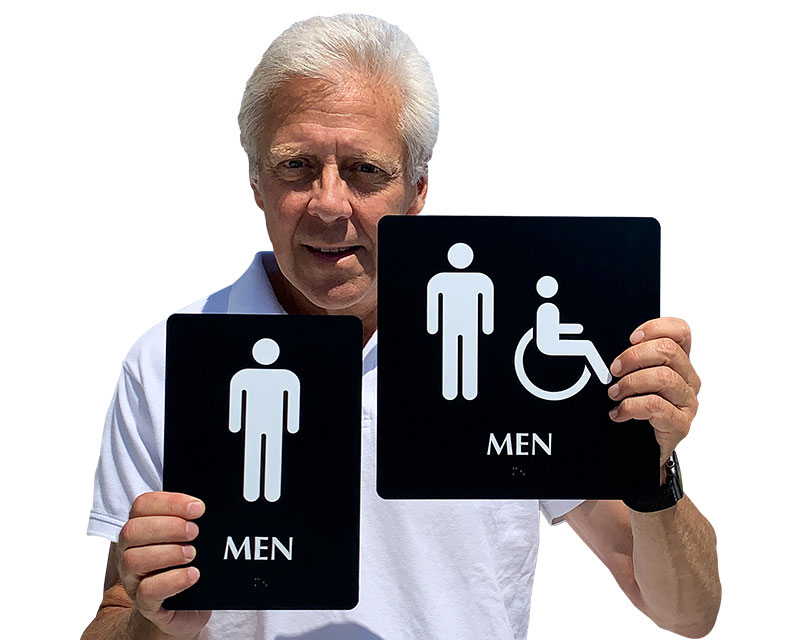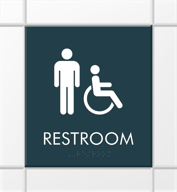 We use Grade 2 Braille on our men’s restroom signs to ensure they comply not only with Federal but with California specifications as well. These signs are tactile as well and have raised characters in compliance with ADA.