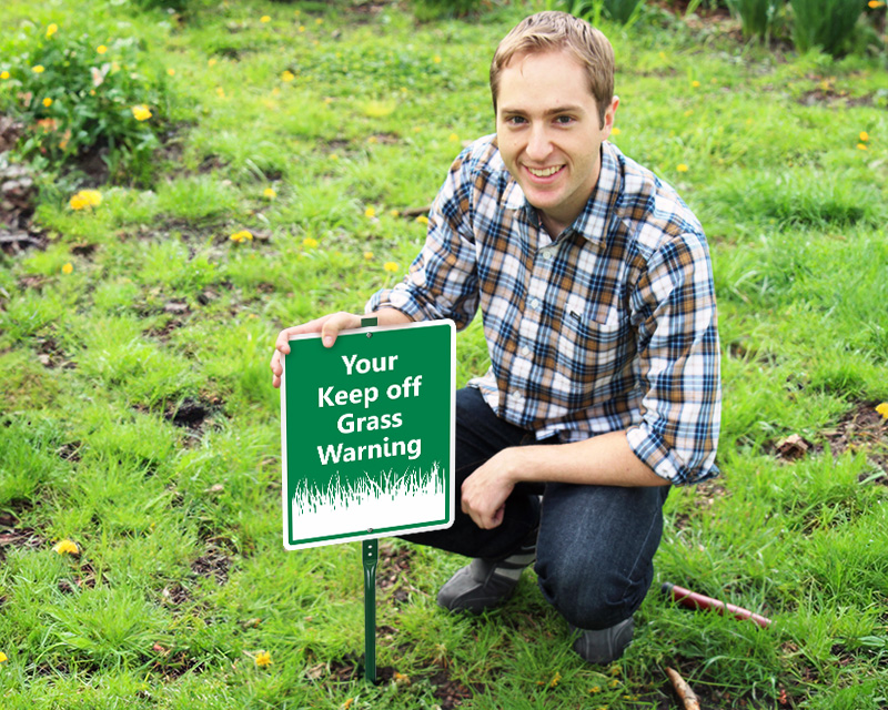 Custom No Mowing Sign : Add Your Headline and Text Part #:S-3906 12" x 10" Aluminum Sign & 3' Tall Stake Verified Purchase