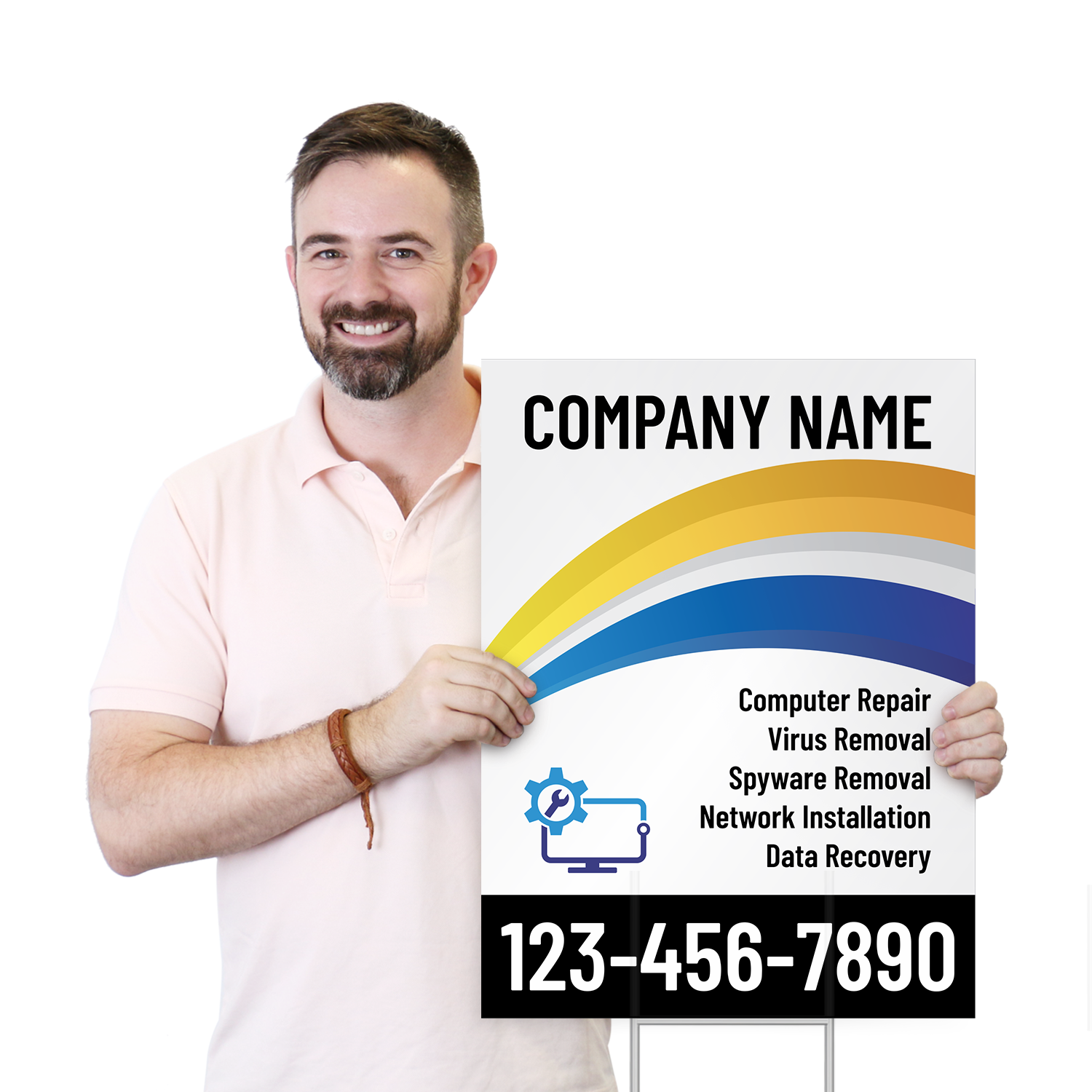 The most popular and versatile size for custom yard signs is 24” x 18”. This size offers a great balance of visibility and portability, providing ample space for your message while being large enough to be easily read by passing traffic. It is a standard for real estate, contracting, and event signage. We offer a variety of design options in this popular format on our 24x18 templates page.