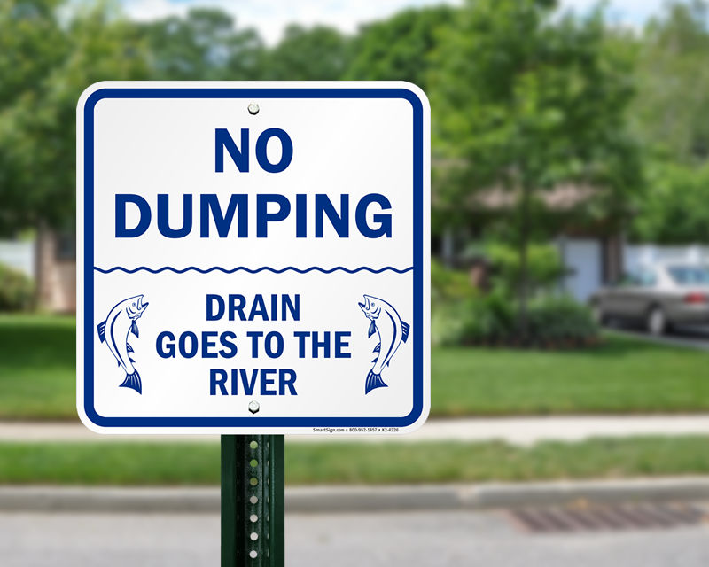 LawnBoss® Sign & Stake Kit : No Dumping, Drain Goes To The River Part #:K2-4228 12" x 10" Aluminum Sign & 3' Tall Stake Verified PurchaseHappy Customer