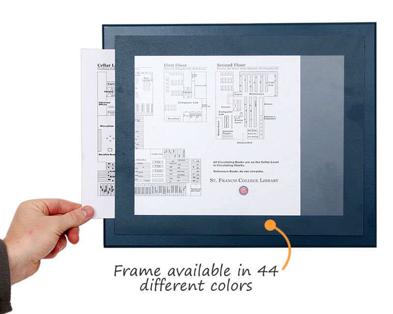 We have map holders with different installation options like standoff barrels and satin aluminum caps with screws with plastic anchors or foam adhesive strip backing. Take your pick.