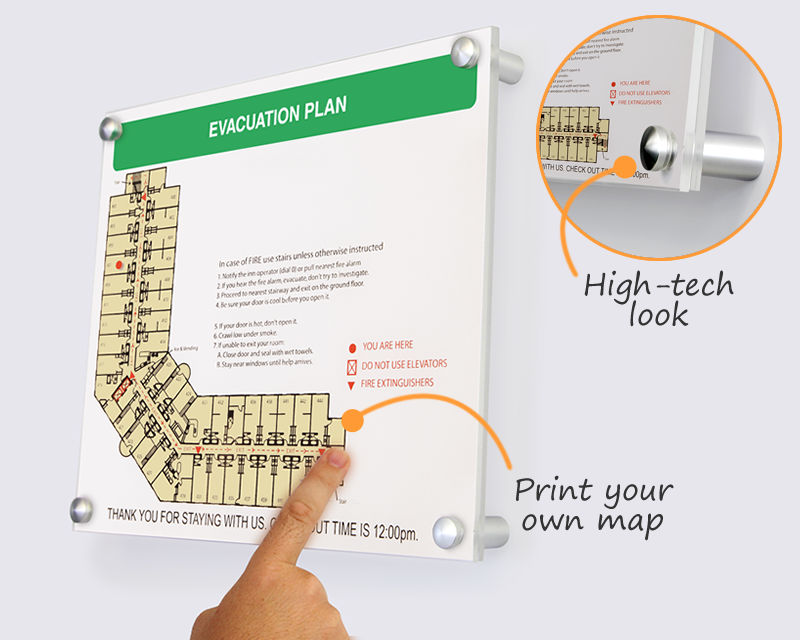 Facilities may store evacuation maps inside cabinets or drawers. Proper signage can indicate the exact placement of the map, so that action can be taken quickly.