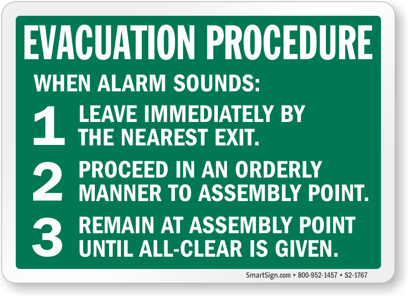 Evacuation Sign: Evacuation Procedure Steps S2-1767