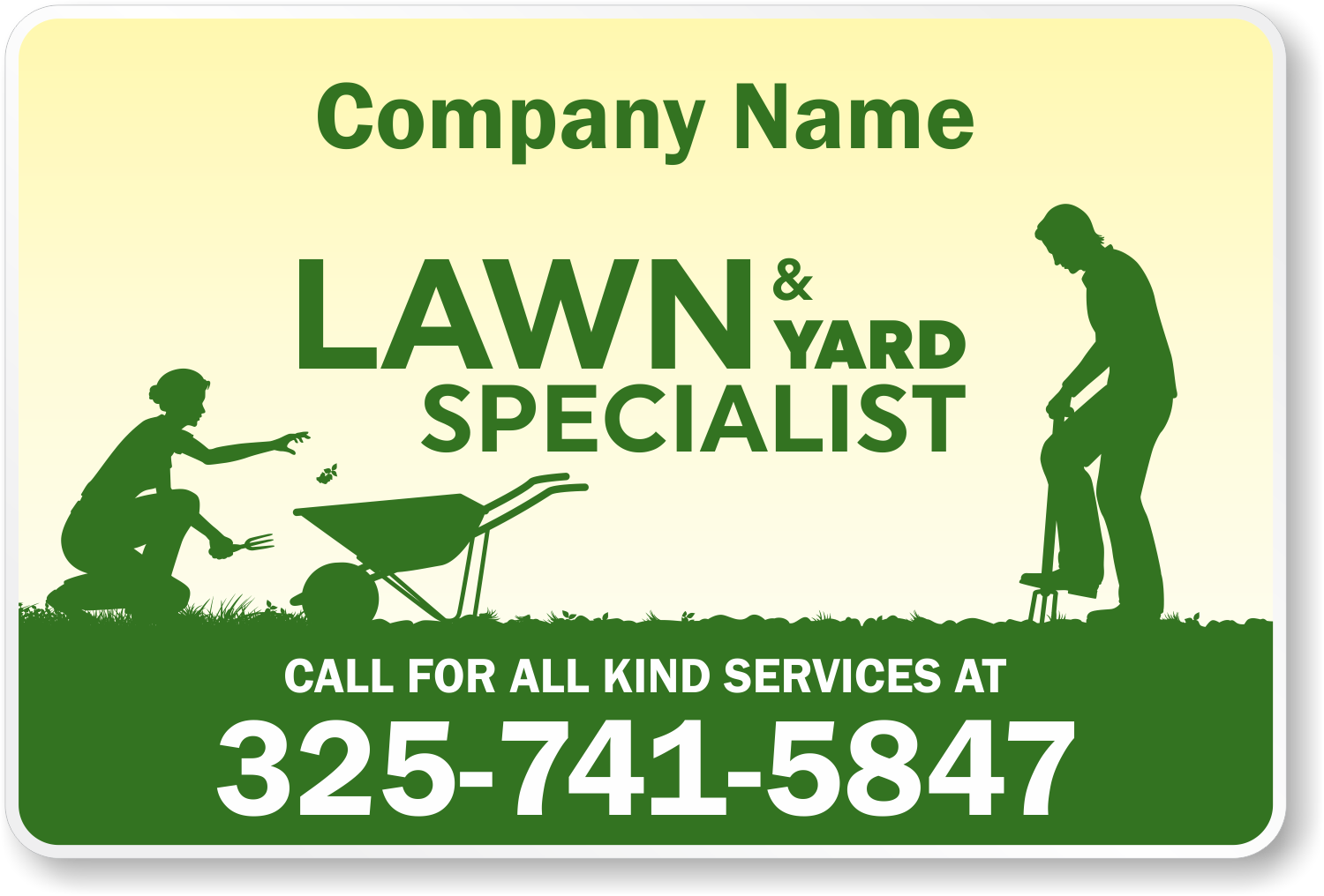 Here's a Custom Vehicle Magnetic Sign with a lawn and yard graphic background for a completely professional look. Just add your company's name and phone number.