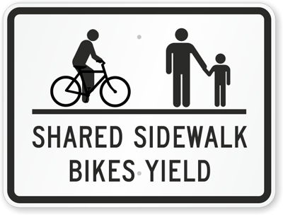 Bike Sign: Shared Sidewalk Bikes Yield (with Graphic) K-6741 Learn More...