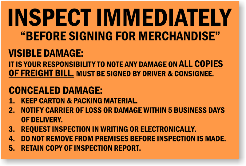 - Warn consignees against possibilities of damage. Alert them to proper procedure of receiving the package for quality check and later claims.