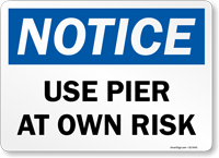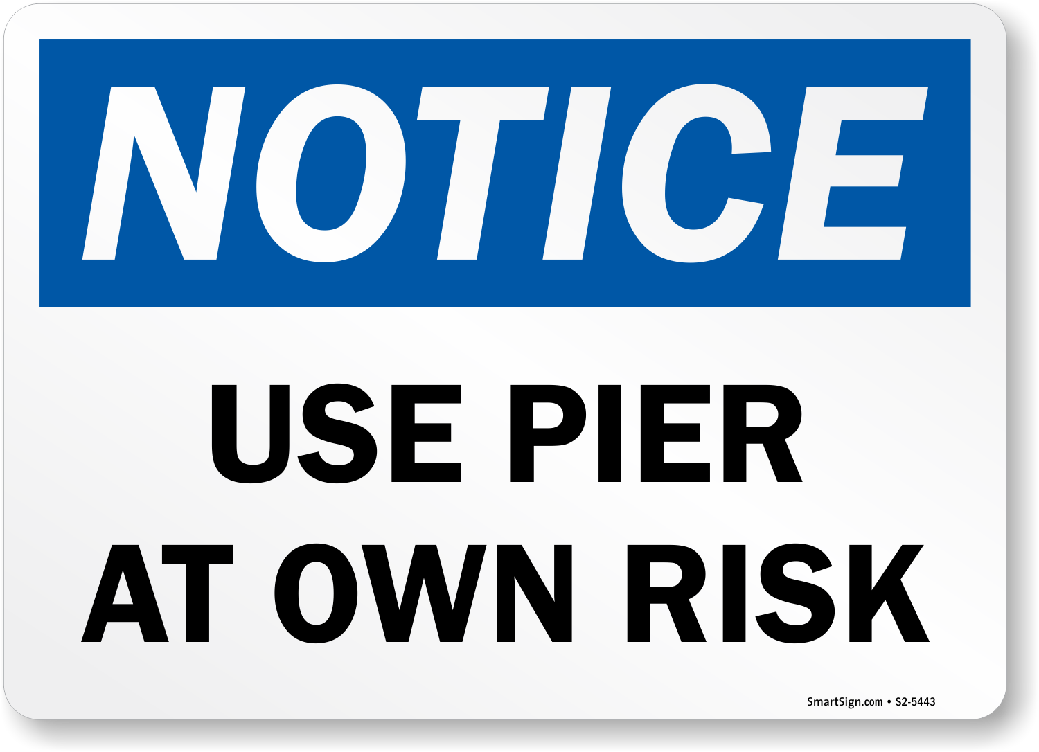 Sign serves as a clear warning to visitors that there may be hazards or risks associated with using the pier, and that they assume personal responsibility for their own safety. In case of any accidents or injuries, the sign can be used as evidence that the individual was aware of the risks involved.