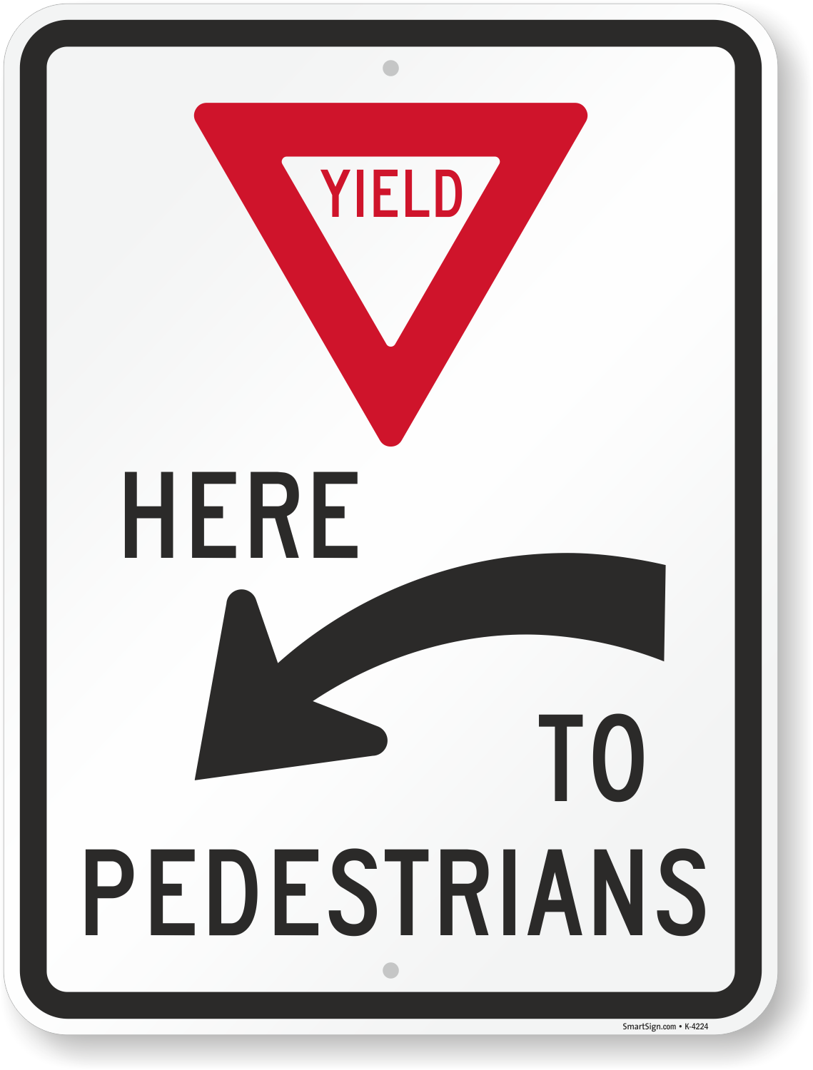Pedestrian Crossing Sign: Yield Here to Pedestrians (with Arrow) K-4224 Learn More...