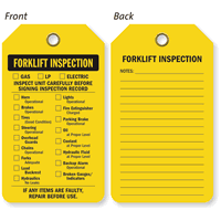 Regular inspection means better protection against preventable accidents. Maintain your forklift inspection record with this bright, Two-Sided Forklift Status Tag.