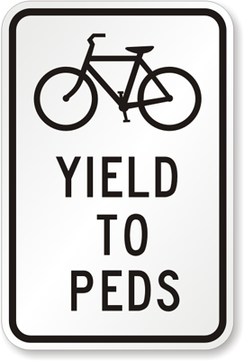 Bicycles Yield to Pedestrians: (Bicyclists symbol) Yield to Peds X-R9-6 Learn More...