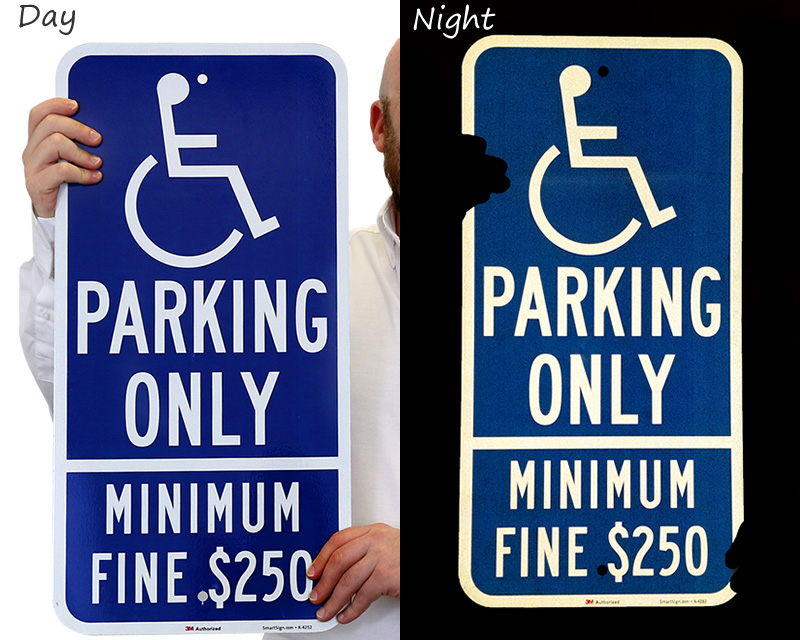 This rule applies to all ADA parking signs, like this handicapped parking sign, when installed on sign posts. See our post installation video for tips.