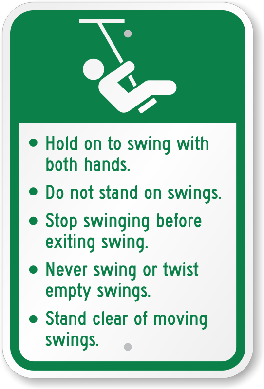 Playground Rules Sign: Hold On To Swing With Both Hands, Do Not Stand On Swings, Stop Swinging Before Exiting K-0253 Learn More...