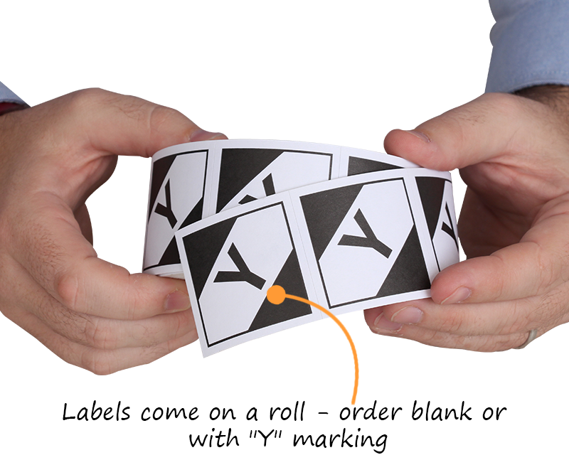 • Easy to see black and white marker communicates the contents of your package effectively. Available in blank or with "Y" marking.