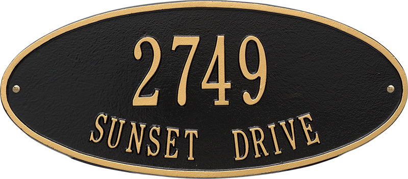 The classic oval design of our Madison Standard Wall Two Lines Address Plaques makes it a popular choice for most property and home owners. Available in a variety of finish colors to accommodate your outdoor color scheme.