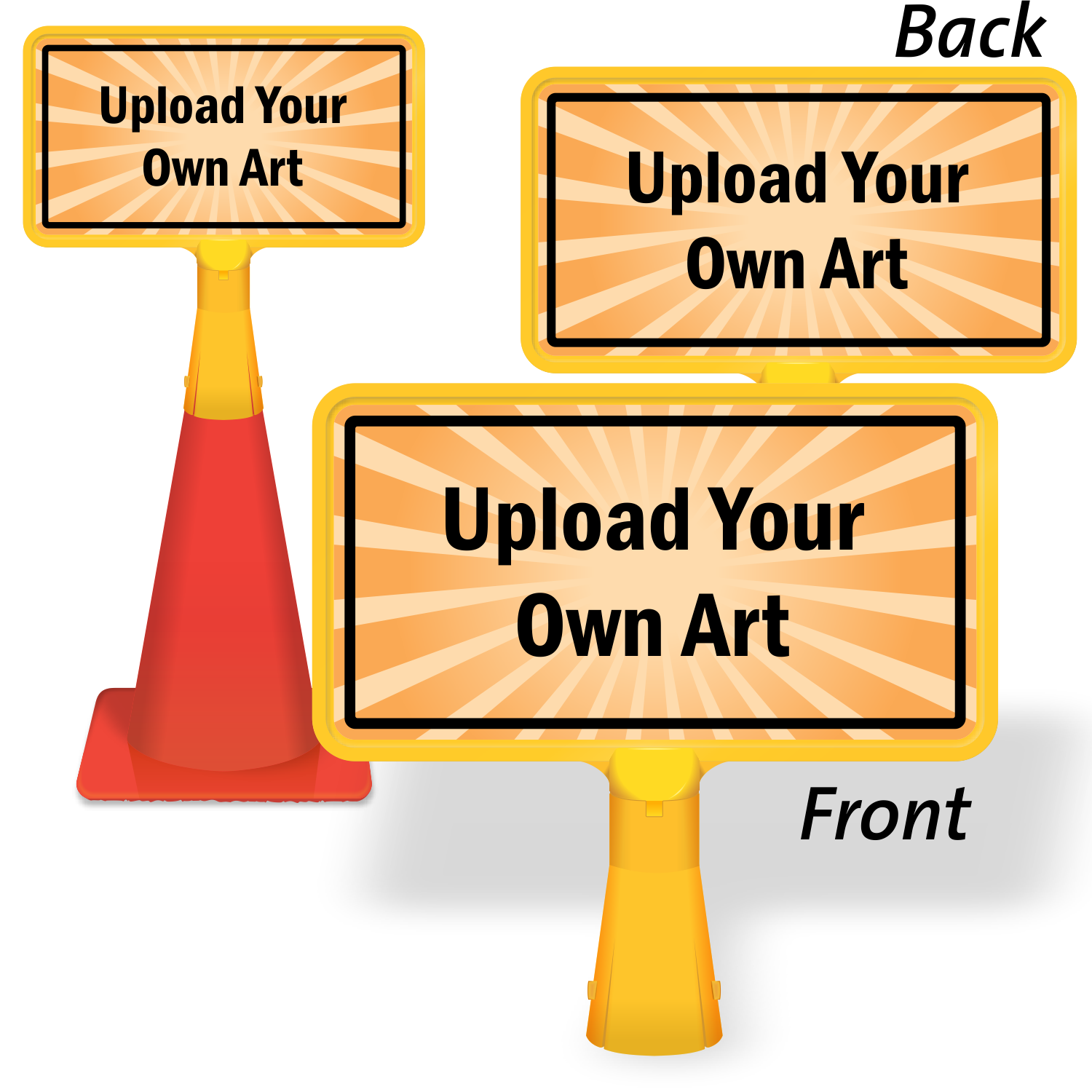 In addition to rigid aluminum signs, we offer custom signs in a variety of other layouts as well. You may explore our custom SlipSafe™ Floor Sign, ConeBoss Sign, FloorBoss Standing Floor Sign, BigBoss Portable Sidewalk Sign, and LawnBoss® Sign & Stake Kit.