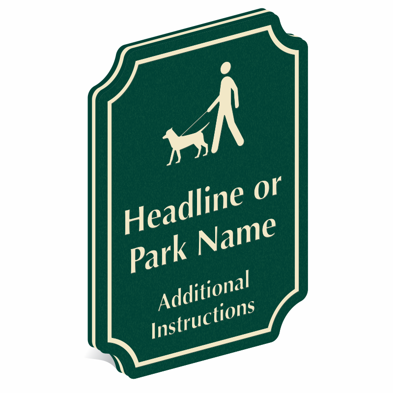 The signs are designed to be attached much like traditional plastic or wooden lumber, making installation straightforward. Standard options include pre-drilled holes for easy mounting with screws to walls, fences, or posts. For specific examples, you can look at products like our Welcome to Our Dog Park sign which can be easily post-mounted.