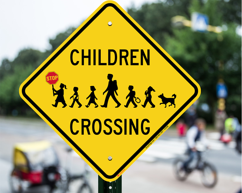 • Fluorescent traffic signs alert drivers that there are children at play.