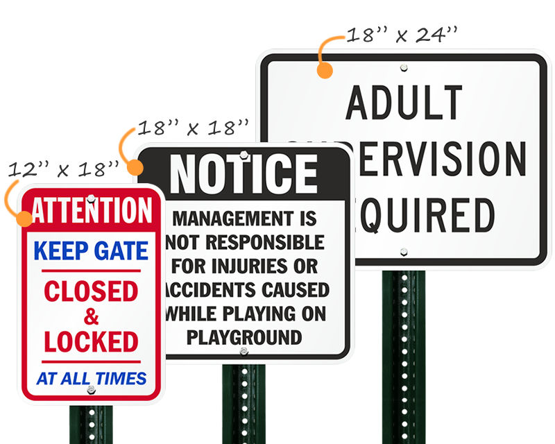 • Playground Safety Signs come with bold headers like “Notice”, “Caution”, “Attention”, “Private Property”, and more.