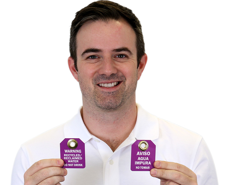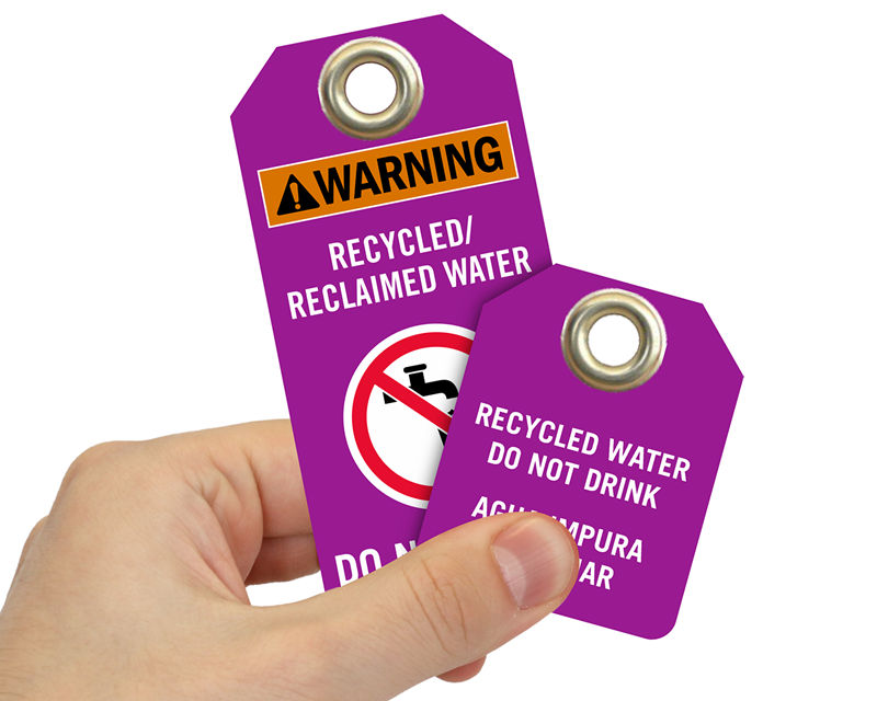 Bilingual Double-Sided Reclaimed... : Recycled Water - Do Not Drink Part #:TG-2239 2.5" x 2" Sealed 30 mil Plastic Micro Tag, Grommet Verified PurchaseSmall & Multilingual