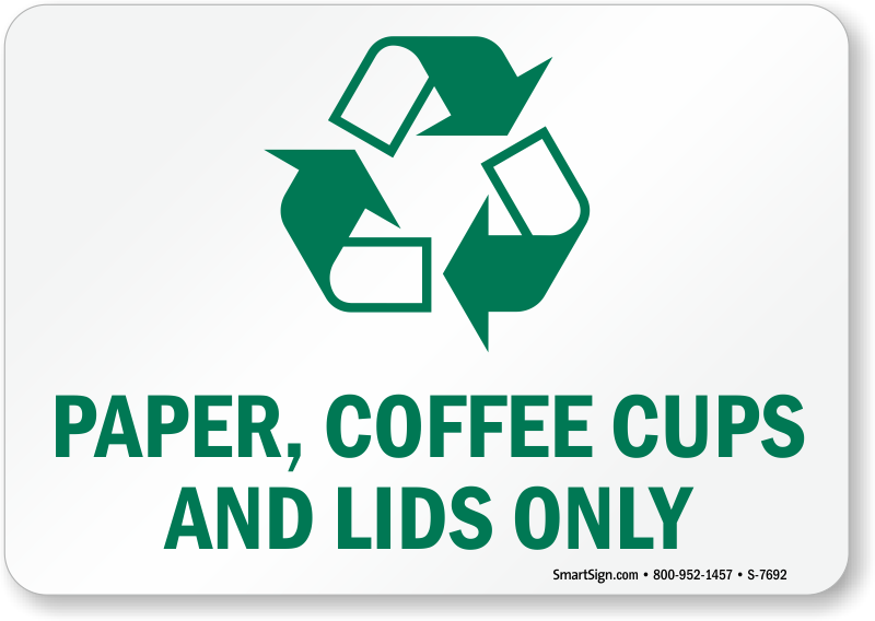 Recycling Sign: Paper, Coffee Cups And Lids Only (with Graphic) S-7692