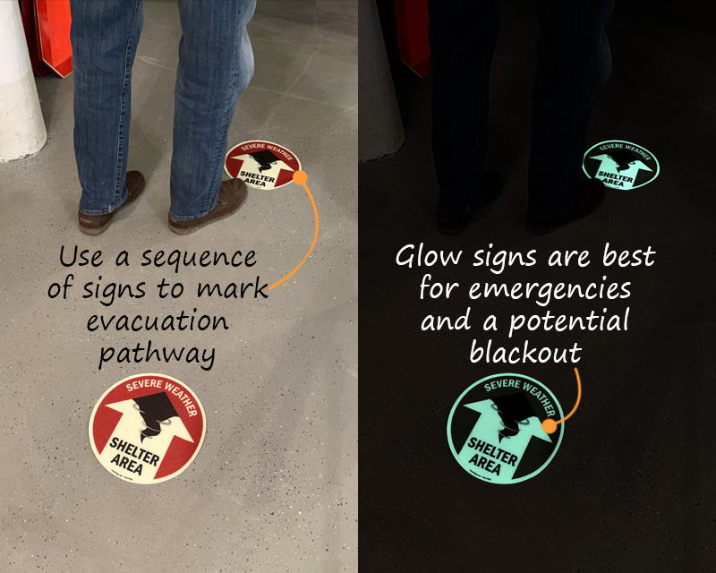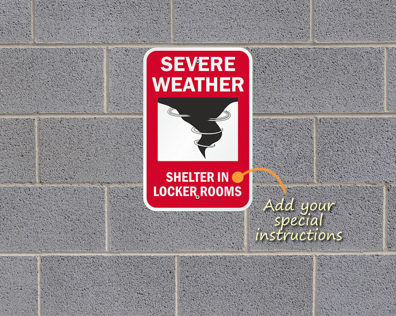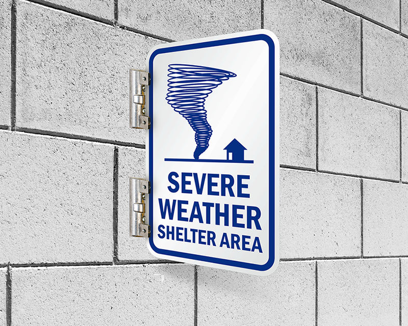 Severe Weather Signs are important in that they communicate and direct everyone to tornado shelters, evacuation routes, rescue areas, or other safe areas. Install these signs and be prepared for emergencies like tornadoes, hurricanes, thunderstorms, and other severe weather. Signs are the most affordable way to ensure safety of employees during severe weather.