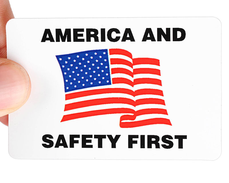 1" x 1-3/4" Flag Hard Hat Stickers : US Flag Helmet Label Part #:HH-0153 1" x 1.75" HatHuggers® Conformable Vinyl Labels - Process Full Color Printing Verified PurchasePride