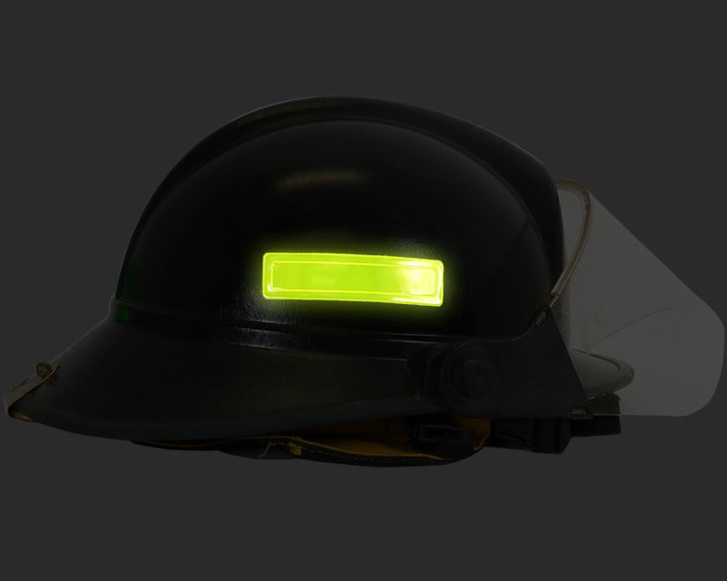 • Reflective ShineStrips™ stickers are the go-to choice for firefighters in the industry. These strips are not only fluorescent but also exceptionally reflective. The fluorescence ensures that your hard hat or helmet stands out, whether it's nighttime or dusk.
